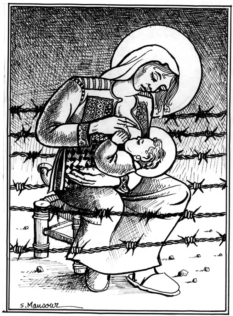 Born in 1947, Mansour spent his childhood around the verdant hills and fields of Birzeit — where he was born — and later his adolescence in Bethlehem and Jerusalem. These experiences left a significant mark on his work, heightening a sense of gradual loss in Palestine, especially after the occupation of the West Bank and Jerusalem in 1967. His early experiences also presented him with the symbols and images he would later use to preserve and highlight Palestinian identity.