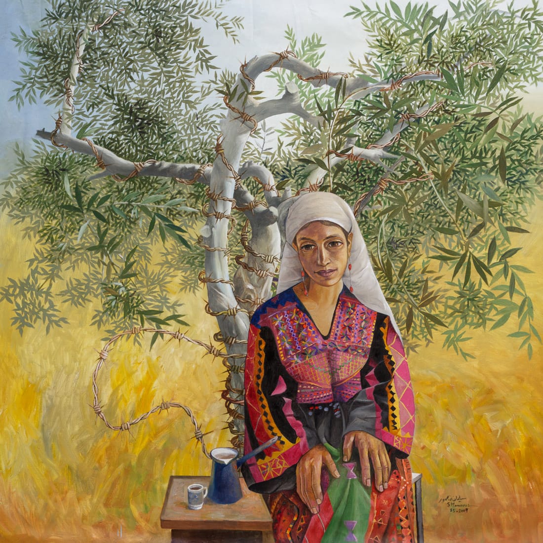 Sliman Mansour’s art captures the life and spirit of Palestine and its people. Bring a bit of Palestine into your home or office. When you hang art in your home or office you’re making a statement about your values. Browse through our collection and choose one of the many colorful and symbolic Palestinian art prints and posters of Sliman Mansour. We ship worldwide. Shop authentic Palestinian art prints and posters featuring embroidery and traditional Palestinian dresses by renowned artist Sliman Mansour. Explore our unique collection and support Palestinian culture and creativity Order today!