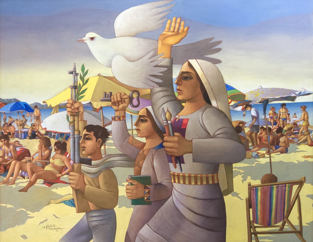 Sliman Mansour’s art captures the life and spirit of Palestine and its people. Bring a bit of Palestine into your home or office. When you hang art in your home or office you’re making a statement about your values. Browse through our collection and choose one of the many colorful and symbolic Palestinian art prints and posters of Sliman Mansour. We ship worldwide. Order today!